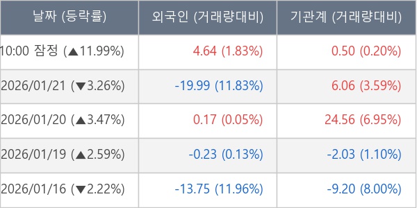 [서울=뉴스핌] 로보뉴스 = 22일 10시 15분 현재 에코프로(086520)는 외국인과 기관이 각각 4.64 만 주, 0.50 만 주 순매수(잠정) 하면서 전일 대비 11.99% (현재가 106,500원) 상승하고 있다.