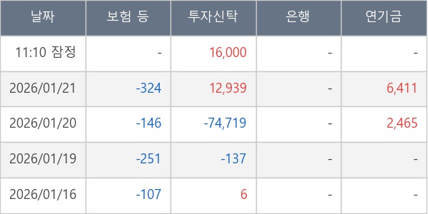 [표] 주요 기관별 순매매량 (단위 주)