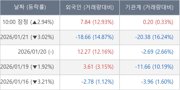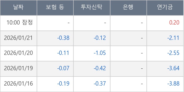 [표] 주요 기관별 순매매량 (단위 만주)