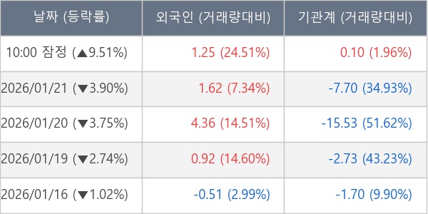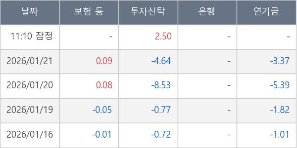 [표] 주요 기관별 순매매량 (단위 만주)