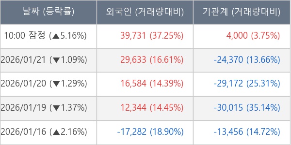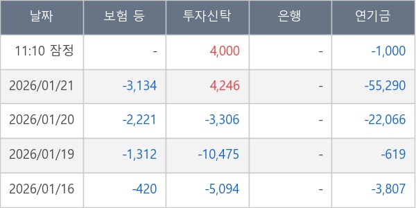 [표] 주요 기관별 순매매량 (단위 주)