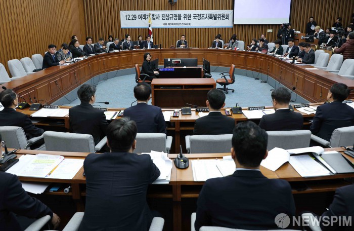 [서울=뉴스핌] 윤창빈 기자 = 22일 서울 여의도 국회 12.29 여객기 참사 진상규명을 위한 국정조사특별위원회에서 12.29 여객기 참사 진상규명을 위한 청문회가 열리고 있다. 2026.01.22 pangbin@newspim.com