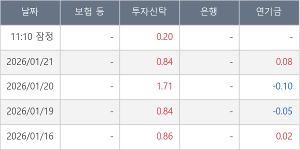 [표] 주요 기관별 순매매량 (단위 만주)