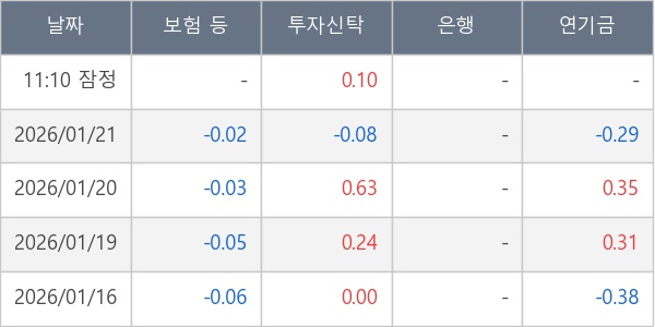 [표] 주요 기관별 순매매량 (단위 만주)