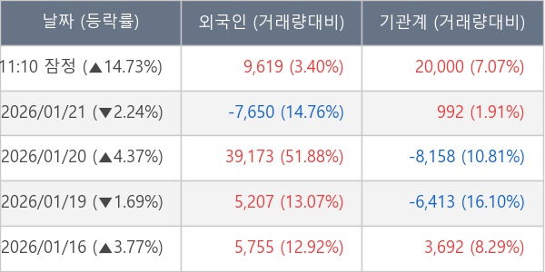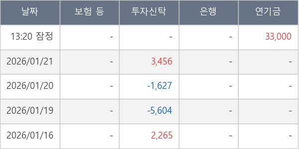 [표] 주요 기관별 순매매량 (단위 주)
