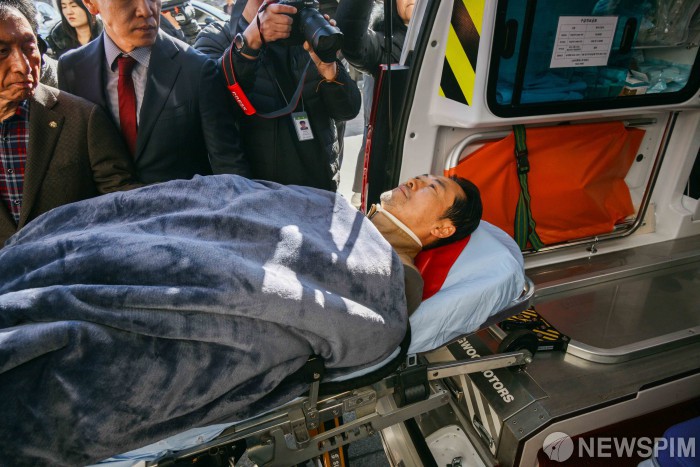 구급차 후송되는 장동혁 당대표