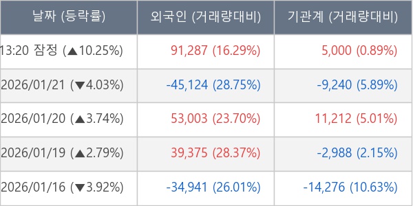 ※ 사모펀드 등 일부 기관의 순매매량은 표시되지 않음