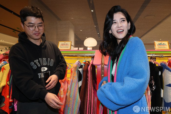 [서울=뉴스핌] 이형석 기자 = 이부진 한국방문의해위원장이 22일 오후 서울 여의도 더현대 서울에서 2026 코리아그랜드세일에 참여하는 매장 '위글위글'을 방문했다. 이 위원장이 제품을 착용하고 있다. 2026.01.22 leehs@newspim.com