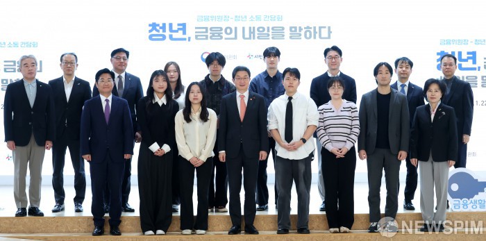 [서울=뉴스핌] 정일구 기자 = 이억원 금융위원장이 22일 오후 서울 중구 온드림 소사이어티에서 열린 금융위원장-청년 소통 간담회 '청년, 금융의 내일을 말하다'에서 참석자들과 기념촬영을 하고 있다. 2026.01.22 mironj19@newspim.com