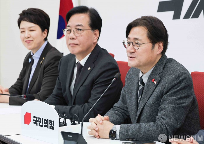 [서울=뉴스핌] 윤창빈 기자 = 홍익표 청와대 정무수석이 22일 서울 여의도 국회에서 송언석 국민의힘 원내대표를 예방한 가운데 발언하고 있다. 2026.01.22 pangbin@newspim.com