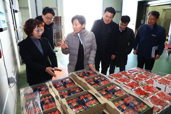 [세종=뉴스핌] 이정아 기자 = 송미령 농림축산식품부 장관이 충남 논산시를 방문해 겨울철 대표 시설작물인 딸기의 생육 상황과 출하 동향을 점검했다.