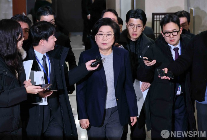 [서울=뉴스핌] 윤창빈 기자 = 이혜훈 기획예산처 장관 후보자가 23일 서울 여의도 국회에서 인사청문회 참석을 위해 이동하고 있다. 2026.01.23 pangbin@newspim.com