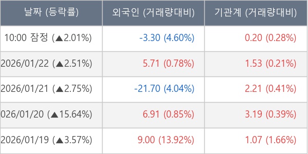 [표] 주요 기관별 순매매량 (단위 만주)