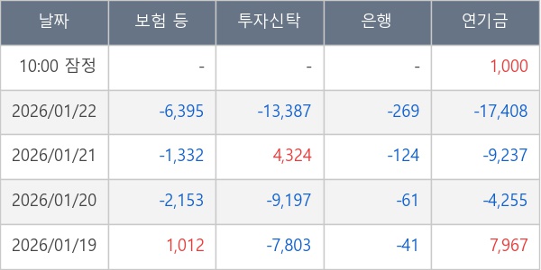 [표] 주요 기관별 순매매량 (단위 주)