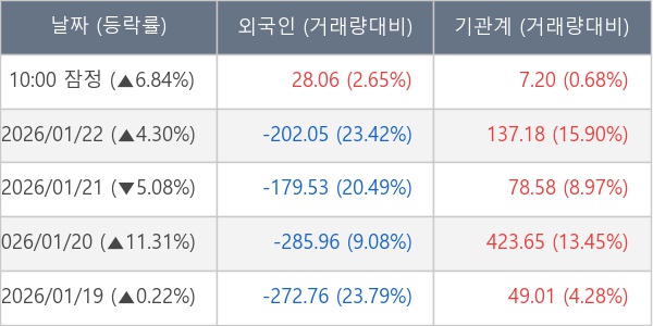 [표] 외국인ㆍ기관 순매매량 (단위 만주)