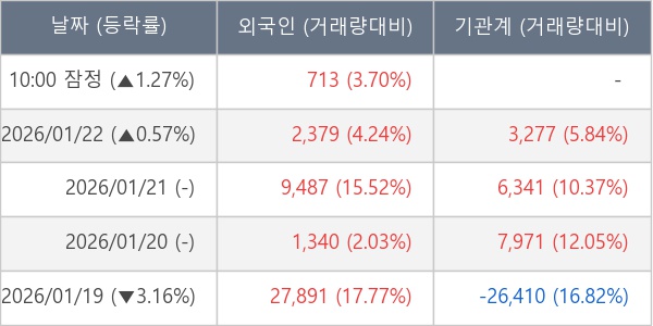 [표] 외국인ㆍ기관 순매매량 (단위 주)