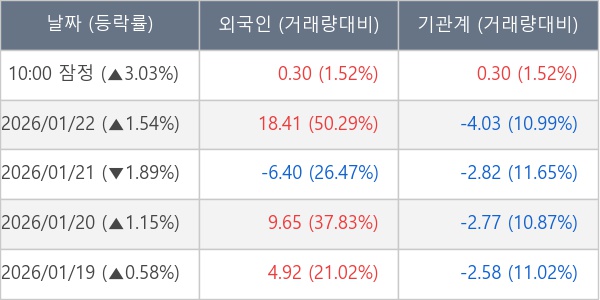 [표] 외국인ㆍ기관 순매매량 (단위 만주)