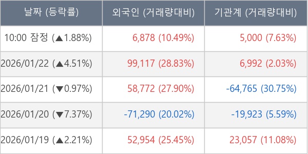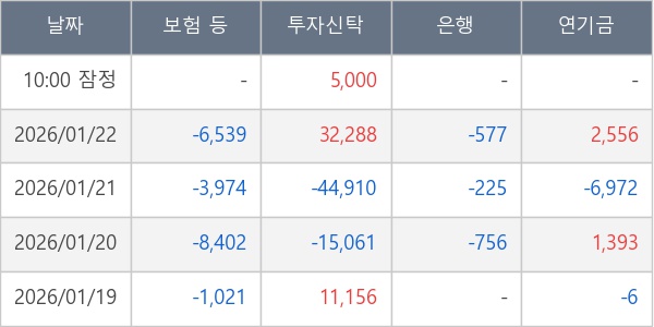 [표] 주요 기관별 순매매량 (단위 주)