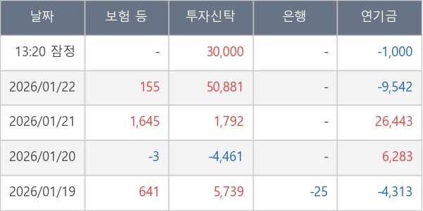 ※ 사모펀드 등 일부 기관의 순매매량은 표시되지 않음