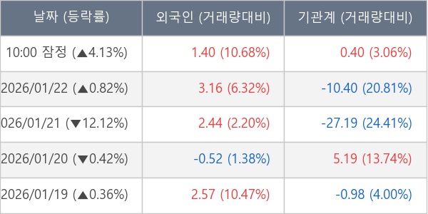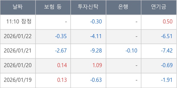 [표] 주요 기관별 순매매량 (단위 만주)