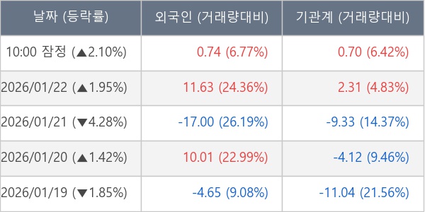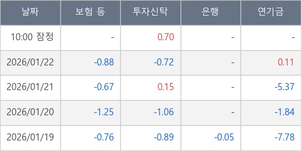 [표] 주요 기관별 순매매량 (단위 만주)