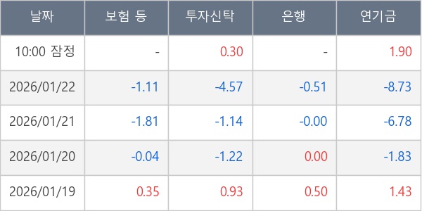 [표] 주요 기관별 순매매량 (단위 만주)