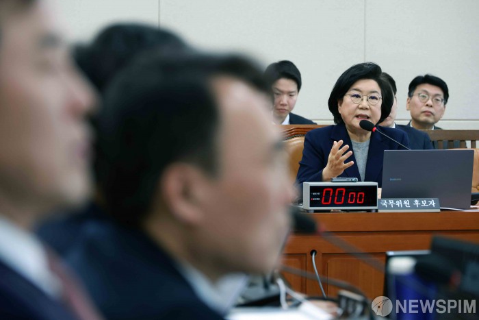 [서울=뉴스핌] 윤창빈 기자 = 이혜훈 기획예산처 장관 후보자가 23일 서울 여의도 국회에서 열린 재정경제기획위원회의 인사청문회에서 의원 질의에 답하고 있다. 2026.01.23 pangbin@newspim.com
