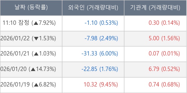 [장중수급포착] 에스엠코어, 기관 5일 연속 순매수행진... 주가 +7.92%