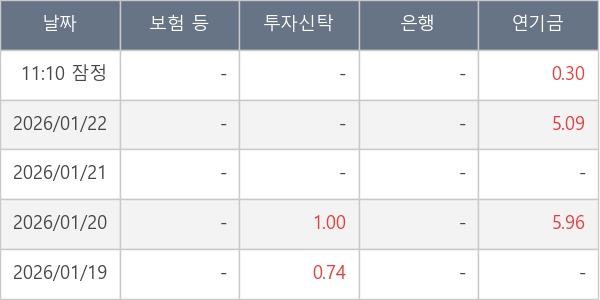 [표] 주요 기관별 순매매량 (단위 만주)