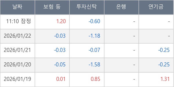 [표] 주요 기관별 순매매량 (단위 만주)