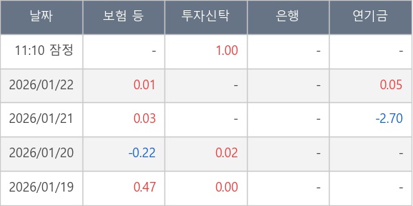[표] 주요 기관별 순매매량 (단위 만주)