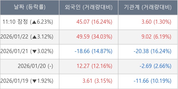 ※ 사모펀드 등 일부 기관의 순매매량은 표시되지 않음