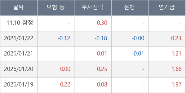 [표] 주요 기관별 순매매량 (단위 만주)