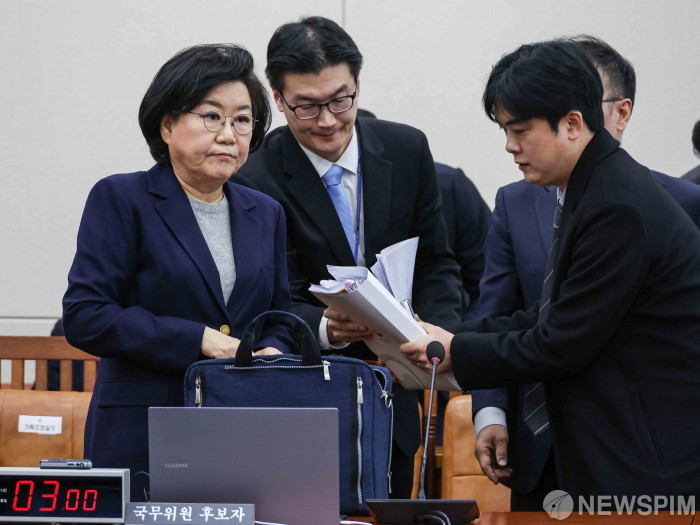 [서울=뉴스핌] 윤창빈 기자 = 이혜훈 기획예산처 장관 후보자가 23일 서울 여의도 국회에서 열린 재정경제기획위원회의 인사청문회가 정회되자 자리를 나서고 있다. 2026.01.23 pangbin@newspim.com