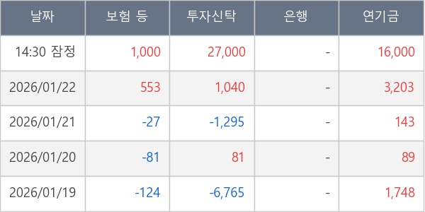 [표] 주요 기관별 순매매량 (단위 주)