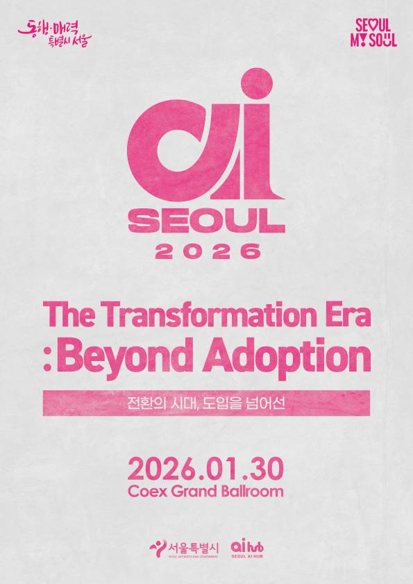 以过去一年的成果为基础,首尔市政府将于30日在COEX举办全球AI研讨会"AI SEOUL 2026"。本次研讨会以"转型时代:超越导入阶段(The Transformation Era: Beyond Adoption)"为主题,届时将汇聚全球知名AI学者与产业领袖,围绕AI技术广泛扩散之后产业与城市所面临的结构性变化与关键课题开展深入讨论。