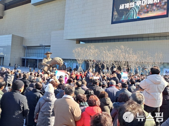 이날 매운 강추위 속에서도 주 부의장 지지자와 시민들이 대거 집결해 뜨거운 열기를 뿜어냈다. 그러나 선거법을 의식해 연호 없이 주 부의장의 출마의 변을 경청하는 모습을 보였다.