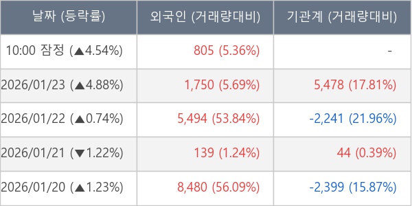 [표] 외국인ㆍ기관 순매매량 (단위 주)