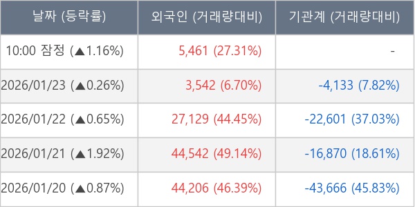 [표] 외국인ㆍ기관 순매매량 (단위 주)