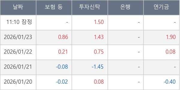※ 사모펀드 등 일부 기관의 순매매량은 표시되지 않음