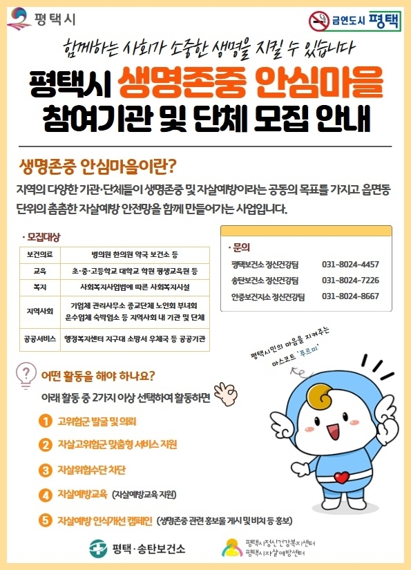 '생명존중 안심마을' 안내 및 참여기관 모집 홍보물[사진=평택시]