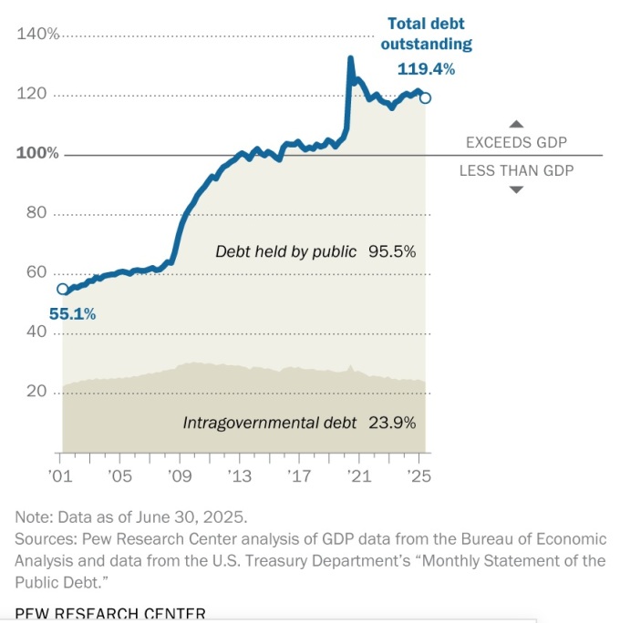 미국 GDP 대비 부채 비율 [자료=퓨 리서치]