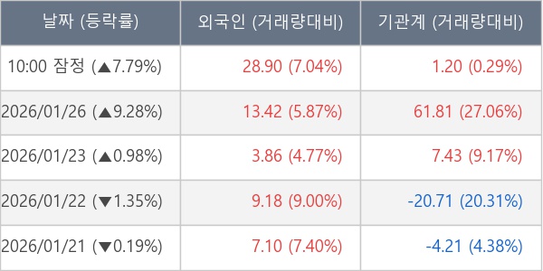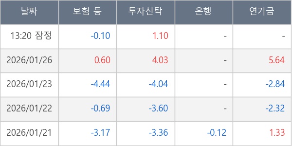 [표] 주요 기관별 순매매량 (단위 만주)