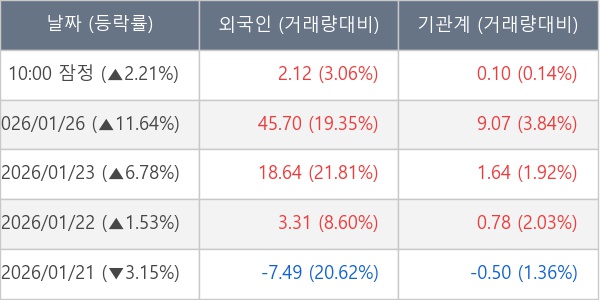 [장중수급포착] 에이티넘인베스트, 외국인/기관 동시 순매수… 주가 +2.21%