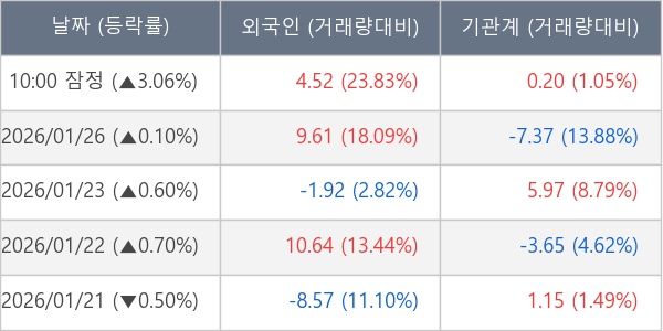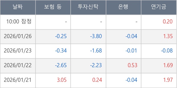 [표] 주요 기관별 순매매량 (단위 만주)