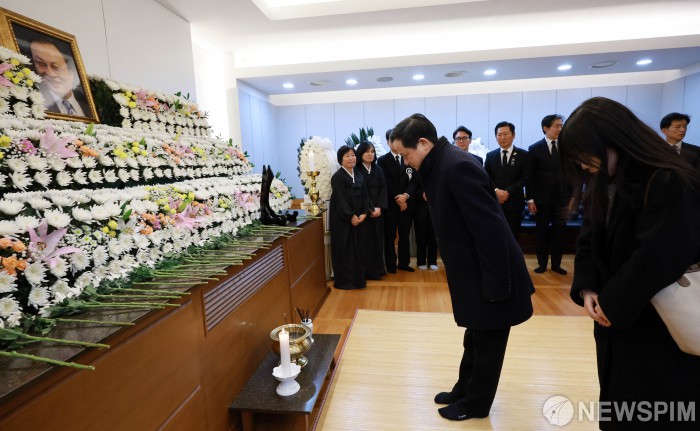 [서울=뉴스핌] 사진공동취재단 = 다이빙 주한중국대사가 27일 서울 종로구 서울대학교병원 장례식장에 마련된 이해찬 민주평화통일자문회의 수석부의장의 빈소를 찾아 조문하고 있다. 2026.01.27 photo@newspim.com
