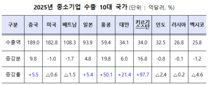 이순배 중기부 글로벌성장정책관은 "지난해 중소기업 수출은 수출 지원정책 확대와 기업의 노력이 맞물려 전반적으로 개선되면서 역대 최대 실적을 기록했지만, 관세 등 통상 리스크 장기화에 대한 중소기업계의 우려가 큰 것도 사실"이라며 "앞으로도 대외 불확실성에 선제적으로 대응하여 중소기업 수출의 회복세가 지속될 수 있도록 노력하겠다"고 강조했다.