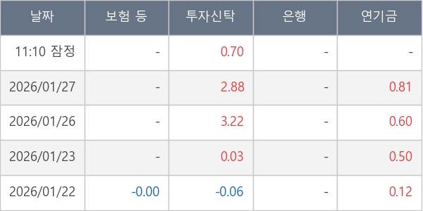 [표] 주요 기관별 순매매량 (단위 만주)