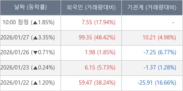 [표] 외국인ㆍ기관 순매매량 (단위 만주)