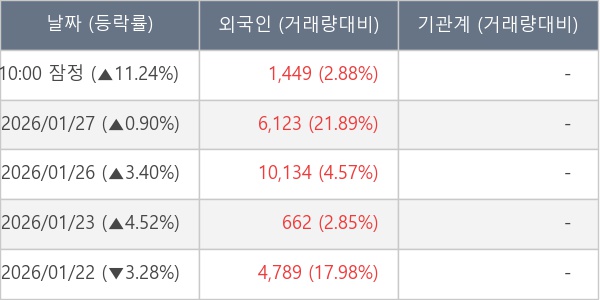 [표] 외국인ㆍ기관 순매매량 (단위 주)